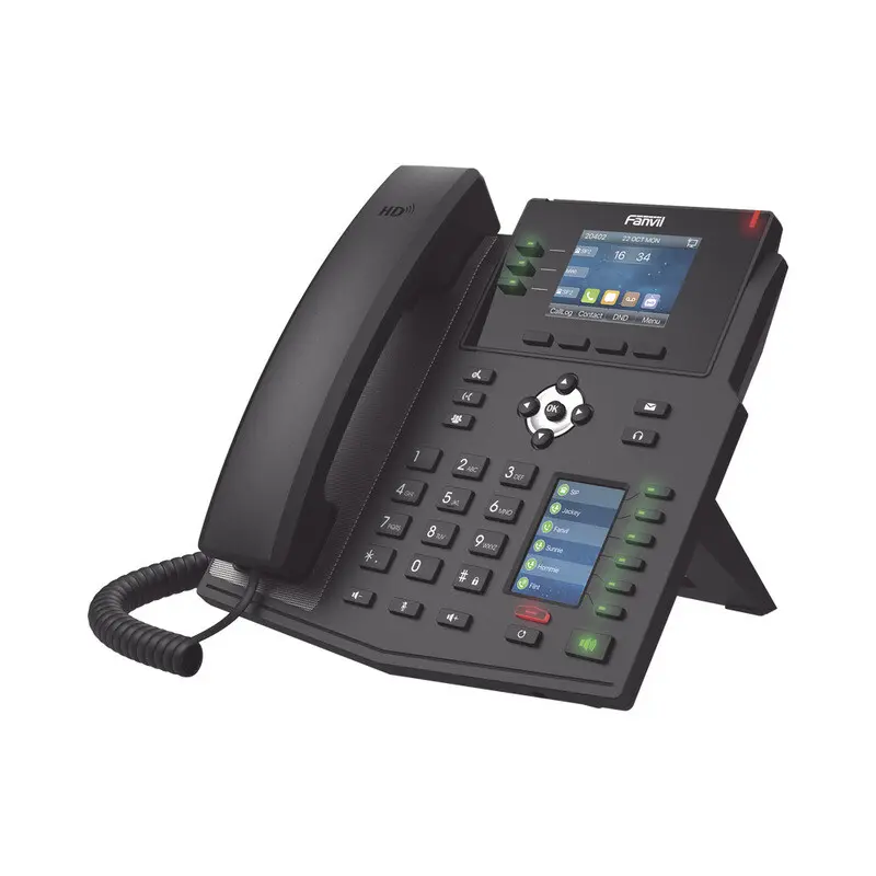 Fanvil X4U ofrece acceso directo a instrucciones con dos pantallas a color de alta resolución de 320×240, ideal para que las empresas mejoren su flexibilidad y productividad en el trabajo diario. El códec de banda ancha G.722 y Opus de este dispositivo ofrece una experiencia de audio HD inmersiva tanto en banda alta como baja con la red.