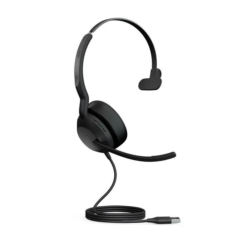 Jabra Evolve 2-50. La innovadora tecnología Jabra Air Comfort le ayuda a concentrarse durante su jornada sin que los auriculares le causen problemas. Varias capas de espuma perforada ultrasuave al interior de la diadema* alivian la presión y crean una comodidad increíble fuera de serie.Las copas flexibles y ergonómicas de los auriculares pueden girar y moverse cada vez que usted hace un movimiento, lo que le da aún más libertad. Un original diseño de cámara acústica, micrófonos premium con compresión de ruido y un chipset especialmente diseñado ofrecen una potente Cancelación Activa de Ruido, que le protegerá frente al ruido del exterior para crear su propia zona de concentración. Un inteligente chipset alimenta el algoritmo con separación del habla y cancelación de ruido, además de 2 micrófonos premiumdentro de los Evolve2 50, a fin de filtrar con eficacia las distracciones de fondo. Así, su interlocutor le oirá solamente a usted con la misma claridad que si estuviera sentado a su lado. Los Evolve2 50 están diseñados para facilitarle las cosas. Simplemente conéctelos directamente al ordenador y estará listo para empezar. La conectividad dual significa que puede utilizar Bluetooth® para conectarse a un segundo dispositivo (como su teléfono) al mismo tiempo, para que pueda cambiar sin problemas entre listas de reproducción de su música preferida en uno de los dispositivos y recibir llamadas en el otro. Los Evolve2 50 funcionan con todas las plataformas de reuniones virtuales y también están disponibles en una variante certificada para Microsoft Teams a fin de facilitar una colaboración fluida y más eficiente.