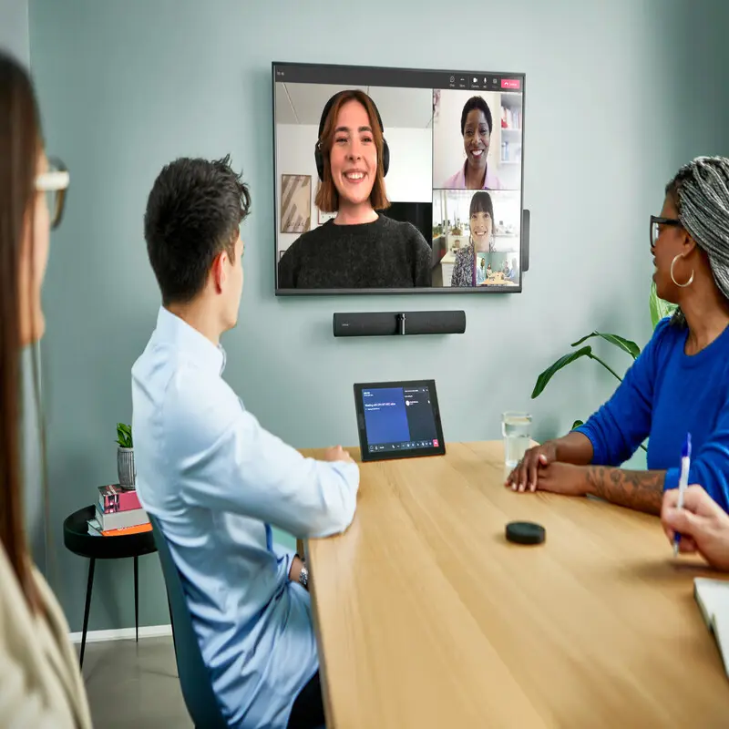 PanaCast 50 Room System, Colaboración por vídeo. Reinventada. Jabra PanaCast 50 Room System es una solución completa que permite que las salas pequeñas y medianas sean el escenario donde tengan lugar reuniones virtuales más inclusivas e inmersivas. Nos hemos asociado con Lenovo a fin de ofrecer experiencias innovadoras de colaboración por vídeo para que el trabajo híbrido se desarrolle sin problemas. Esta solución combinada de marcas de confianza simplifica las videoconferencias para brindar una mayor productividad. En la asociación entre Jabra y Lenovo se ha combinado PanaCast 50 con Lenovo ThinkSmart Core y ThinkSmart Controller para proporcionar un sistema de salas completo e inteligente que reinventa las videoconferencias. Al utilizar transmisiones de audio y vídeo basadas en IA, PanaCast 50 Room System ofrece una experiencia de colaboración mucho más natural e inclusiva. Y gracias a nuestros algoritmos inteligentes patentados, se captura el tono y los matices de la reunión a fin de que los equipos híbridos se mantengan conectados y participen estén donde estén. Hemos reinventado el audio de las salas de reunión para adaptarnos a la era del trabajo híbrido. Con ocho micrófonos de calidad profesional, la tecnología de formación de haces de detección de voz más avanzada y algoritmos inteligentes que reducen el ruido molesto. Cuatro potentes altavoces Jabra en una configuración estéreo sin vibraciones que llenan la sala con un audio de alta definición y la tecnología de audio bidireccional más reciente que ofrece conversaciones más naturales. El campo de visión completo de 180° del PanaCast 50, significa que puede utilizar toda la sala de reuniones, de pared a pared, y no solo el 60 % visible que ofrecen los sistemas tradicionales de cámara única, lo que le permitirá sacar el máximo partido a su inversión. La tecnología patentada de combinación de vídeo en tiempo real une automáticamente las transmisiones en vivo de tres cámaras de 13 megapíxeles, sin latencia ni distorsión, creando un campo de visión fluido de 180° en 4K panorámico. Reinventamos la videoconferencia.