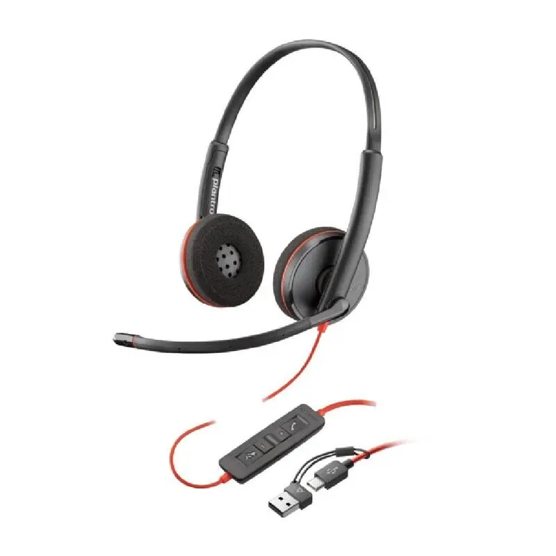 Los auriculares UC con cable de la serie Blackwire 3200 son duraderos, ligeros, fáciles de implementar y ofrecen diversas opciones de conectividad y uso. Si a esto le sumamos la experiencia de Plantronics Manager Pro, un servicio adicional, obtendrá una solución a prueba de futuro. La serie Blackwire 3200, con el audio exclusivo de Plantronics, ofrece funciones de primera categoría a un precio accesible. Disfruta de una experiencia de sonido realmente excepcional, ideal para el uso de voz, música y contenido multimedia. Gestiona las llamadas en tu dispositivo preferido con la comodidad y durabilidad de auriculares alámbricos. Relájate mientras hablas sabiendo que tus auriculares están seguros: la banda metálica ligera para la cabeza ofrece durabilidad y ajuste personalizado. Las orejeras de piel sintética se doblan completamente para facilitar su transporte.