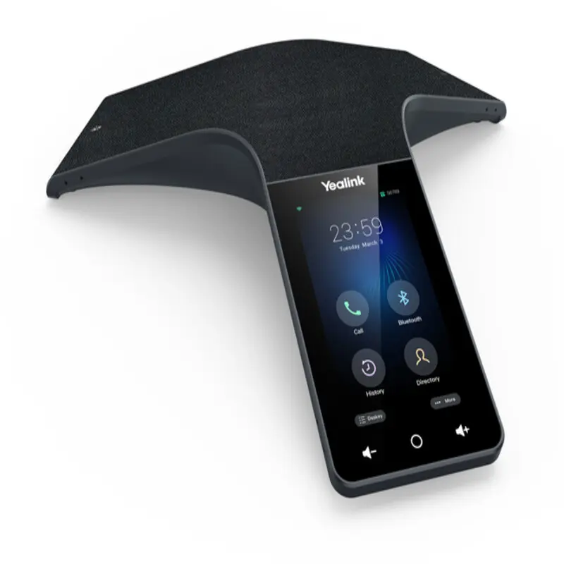 El Yealink CP965 está diseñado para salas de conferencias medianas y grandes. Basado en el sistema Android 9.0, es un teléfono de conferencia HD insignia con potentes funciones de conferencia de voz y un control sencillo. El CP965 adopta un diseño profesional e introvertido que se adapta perfectamente al estilo tranquilo de la sala de conferencias, además de un tejido acústico resistente a derrames accidentales de líquidos. Su pantalla LCD antihuellas con una interfaz de usuario intuitiva facilita el control de la reunión. El CP965 cuenta con 13 micrófonos integrados, lo que le proporciona una experiencia de conferencia clara y natural. Además, puede conectar el CP965 a su dispositivo móvil (como un PC, un smartphone, etc.) mediante Bluetooth o USB para disfrutar de diversos modos de reunión híbridos UC. El CP965 se puede conectar con 3 CP en forma de estrella para lograr una captación y reproducción de sonido sincronizadas, ofreciendo a los usuarios una experiencia de audio óptima. El CP965 le ofrece una nueva solución inteligente para conferencias de voz, el asistente de oficina ideal para su sala de conferencias.