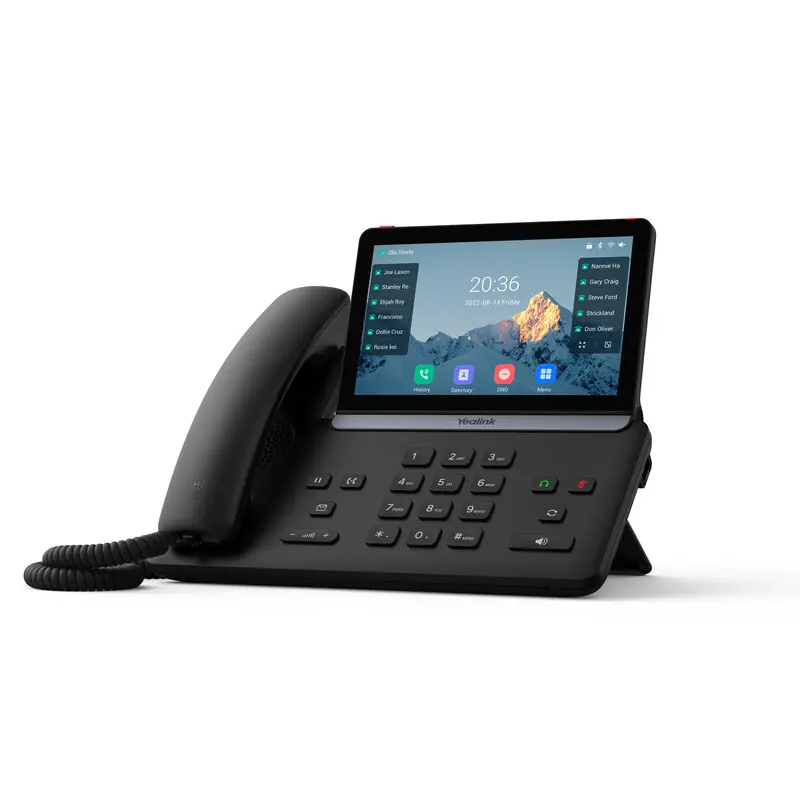 Teléfono empresarial Ultra Prime para una productividad óptima en el escritorio. Especialmente diseñado para ejecutivos y profesionales con mucha actividad, el Yealink SIP-T87W es un teléfono empresarial intuitivo de gama alta con una pantalla táctil multipunto de 7 pulgadas. Permite encontrar fácilmente un ángulo de visión cómodo y proporciona una navegación sencilla con un solo toque. El SIP-T87W ofrece una calidad de sonido de ultraalta definición y es compatible con códecs de audio de banda ancha para lograr efectos de llamada realistas. La cancelación de ruido con IA, desarrollada por Yealink, garantiza una calidad de audio superior durante las llamadas. Con Bluetooth 5.0 integrado y módulos Wi-Fi 6 de doble banda 2.4G/5G, te mantiene al día con la última tecnología, listo para la era inalámbrica del futuro. La serie T8X mejora el ecosistema Yealink, compatible con más auriculares Yealink. Permite la configuración y actualización de los auriculares a través de la pantalla LCD y es compatible con auriculares con función de detección de uso para el cambio inteligente de canal.